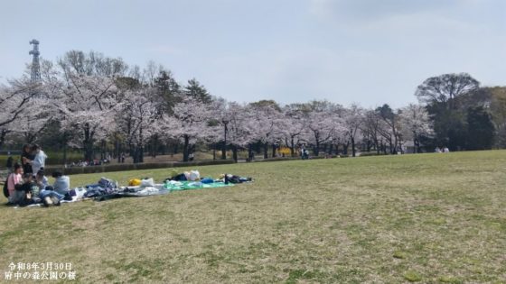 - 花見散歩 !!ほぼ満開だとのことで、家内と府中駅界隈まで花見散歩、往復一万歩!!いい運動になりました。三か所のお花見スポットです。府中では焼肉でランチ!!ビールもお代わりもう一杯、よいひと時でした。